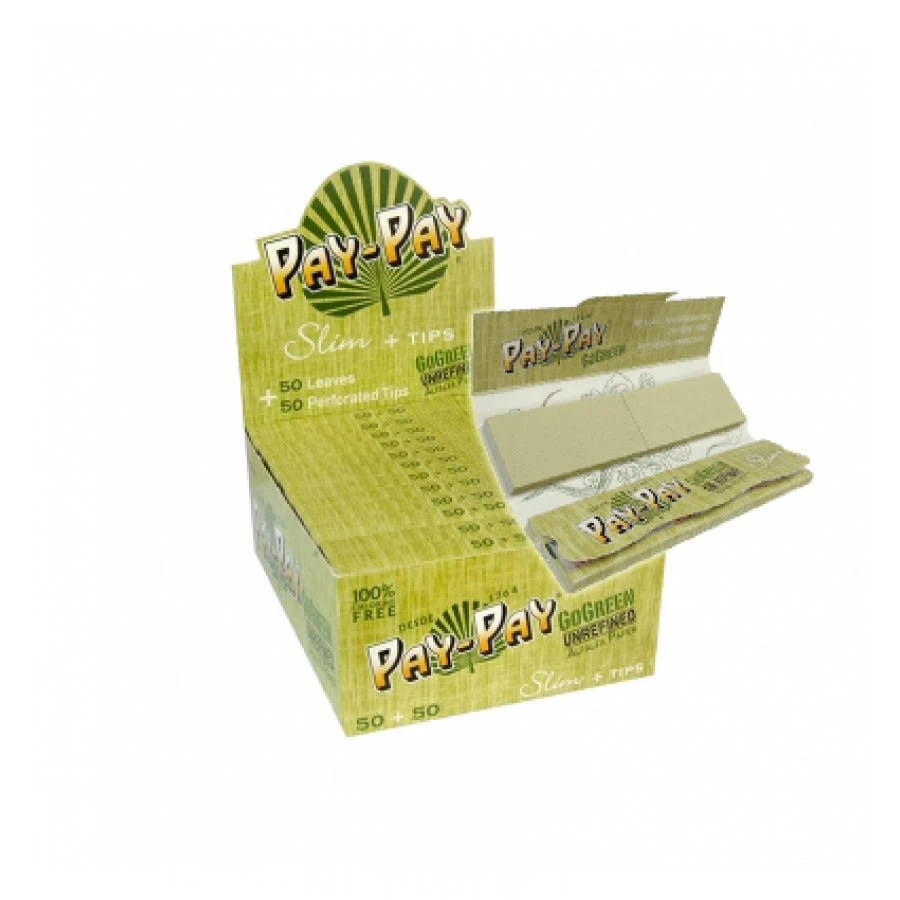 PAY-PAY has developed a new all-natural rolling paper that takes its GREEN coloration from the ALFALFA plant from sustainable crops. In addition, it is made with renewable energy, natural gum arabic and is chlorine-free.