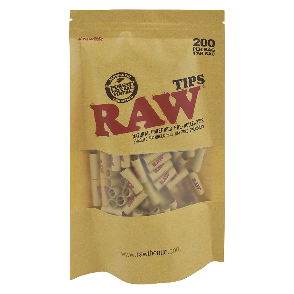 Raw Tips Natural Unrefined Pre-rolled Tips, 200 Tips/Bag, Chlorine & Chemical Free.